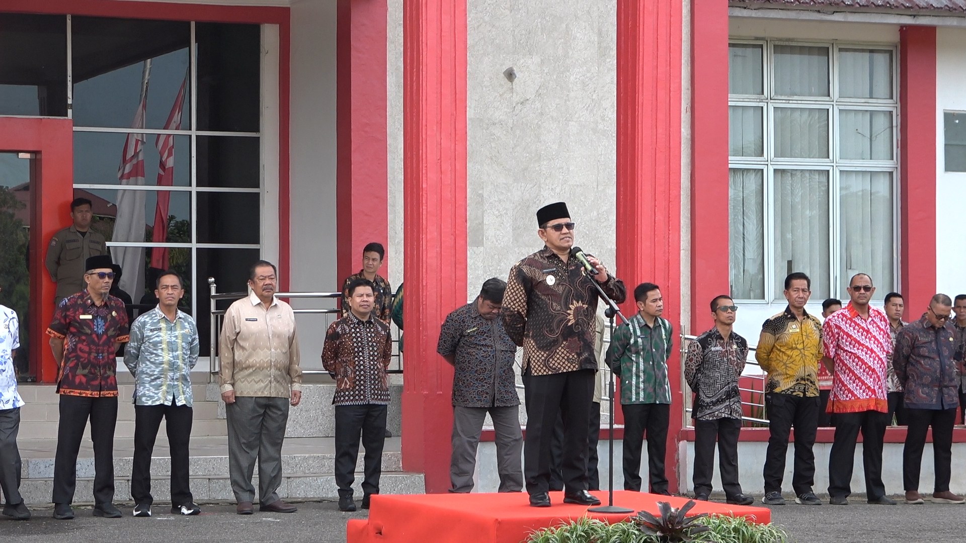 Apel gabungan dipimpin oleh Wakil Bupati Sambas, H. Heroaldi Djuhardi Alwi, S.T., M.T., yang bertindak sebagai pembina apel mewakili Bupati Sambas, H. Satono, S.Sos.I., M.H. Kegiatan ini diikuti oleh jajaran ASN dari berbagai perangkat daerah di lingkungan Pemerintah Kabupaten Sambas.