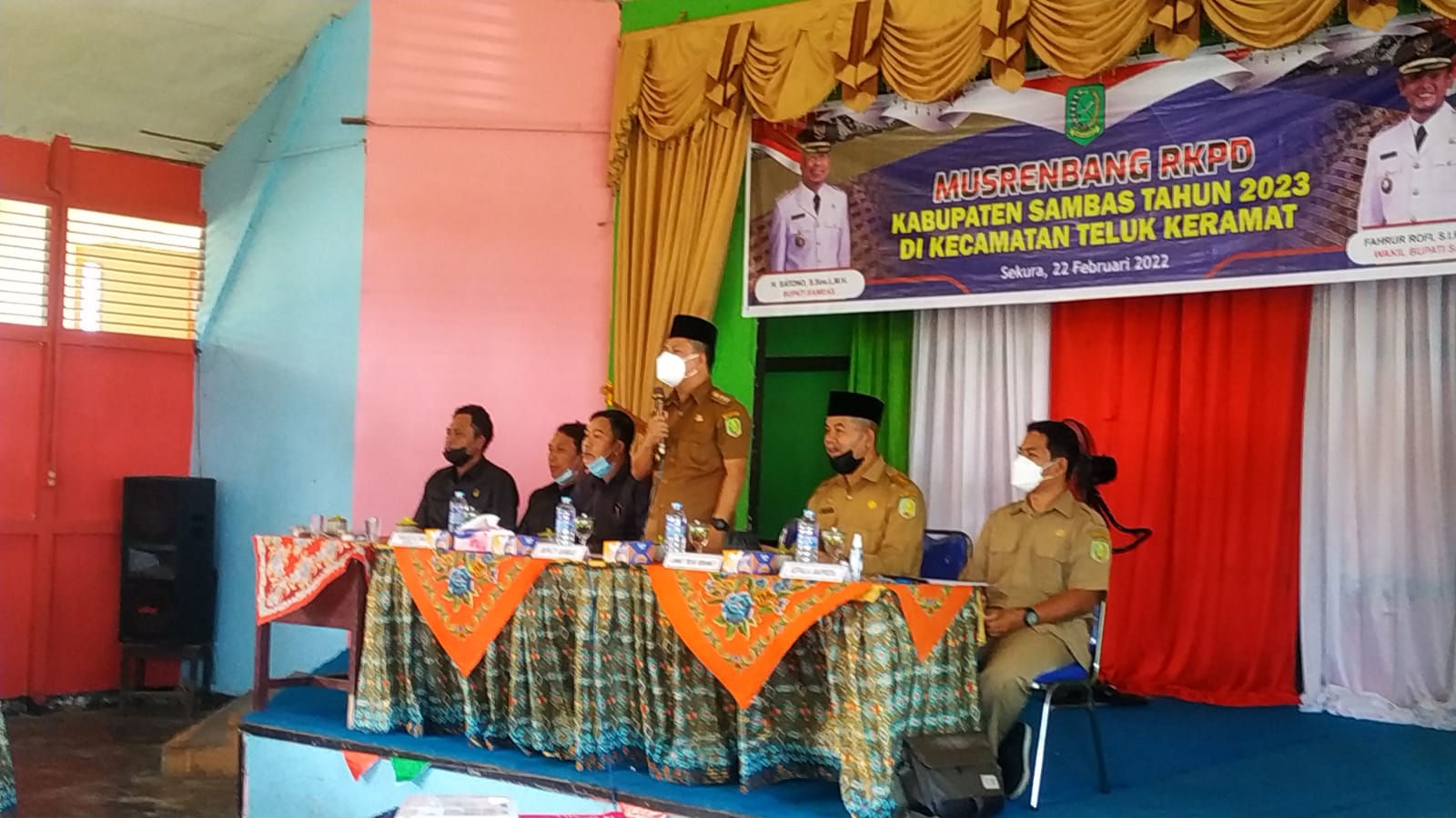 Sambas, PPID – Dengan dilaksnakannya musrenbang diharapkan dapat menampung aspirasi serta masukan pembangunan dari stakeholder dan komponen masyarakat. Hal ini yang diungkapkan bupati sambas saat menghadiri Musrenbang tingkat kecamatan yang dilaksanakan di Kecamatan Teluk keramat Selasa 22 Februari 2022 yang sehari sebelumnya telah menghadiri kegiatan yang sama di Kecamatan Tebas..