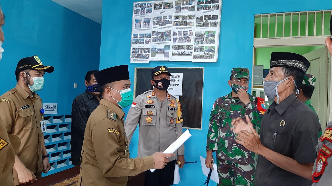 Sambas, PPID – Bupati Sambas H. Atbah Romin Suhaili, Lc, MH bersama Kapolres Sambas, Dandim 1208 Sambas beserta Sekda Kabupaten Sambas berkunjung ke Desa Sumber Harapan dalam rangka monitoring Lomba dan Penilaian Desa Tangguh Selasa 30 Juni 2020. Penilaian Desa tangguh di Desa Sumber Harapan adalah dalam rangka peringatan HUT Bhayangkara ke 74 tahun 2020. Lokasi yang di datangi Bupati beserta rombongan adalah Kantor Desa, sarana dan prasarana desa termasuk tempat ibadah dan lumbung pangan desa.