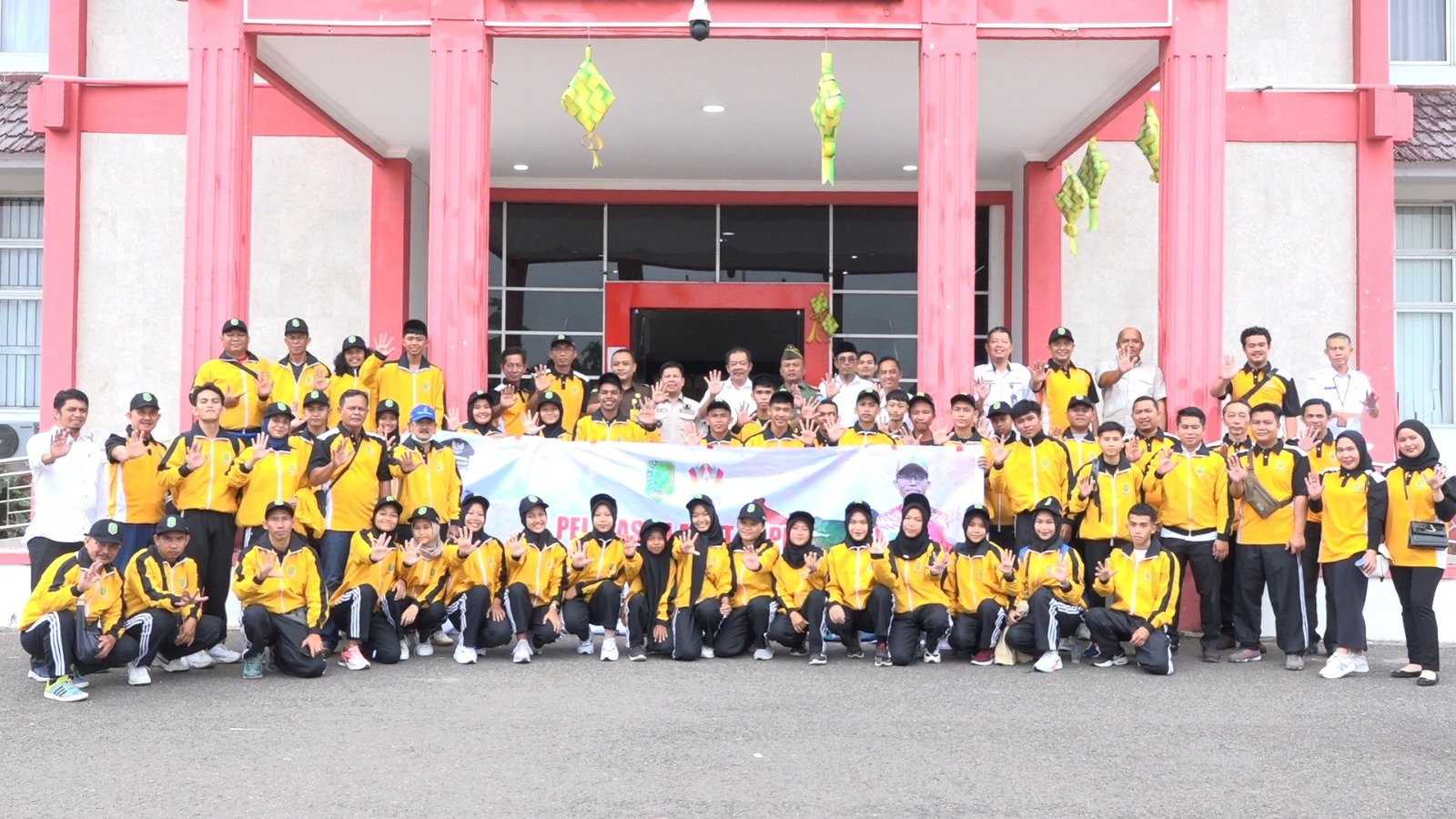 Sambas, PPID – Bupati Sambas H. Satono resmi melepas 49 Atlet Kontingen Kabupaten Sambas yang akan berlaga di 9 Cabang olah raga mengikuti Pekan Olah Raga Pelajar Daerah (POPDA) di Aula Sayap kantor Bupati Sambas, Rabu 14 Juni 2023. Hadir juga melepas keberangkatan kontingen Kepala Dinas Parpora Kab. Sambas I Ketut Sukarja, Asisten I Sunaryo, dan ForKopimda Sambas.