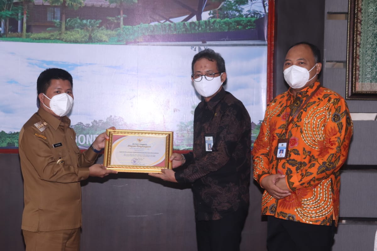 Sambas, PPID – Pemerintah Kabupaten Sambas menerima piagam penghargaan opini Wajar Tanpa Pengecualian (WTP) atas Laporan Keuangan Pemerintah Daerah (LKPD) 2020. Piagam tersebut adalah yang ketiga kalinya secara berturut-turut dari Badan Pengelola Keuangan (BPK), Selasa (26/10/2021).