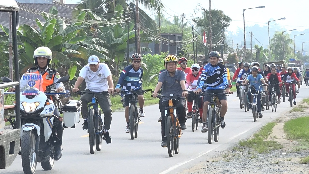 Sambas, PPID – Bupati Sambas Satono beserta jajarannya bersepeda keliling Pasar Tebas, Kabupaten Sambas, untuk melihat langsung kondisi pasar dan geliat ekonomi masyarakat pascapandemi Covid-19 melandai, Minggu (21/8/2022).
