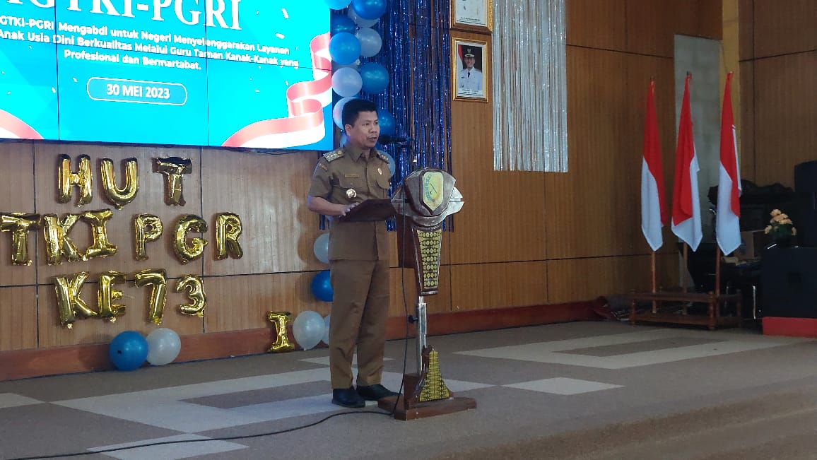 Sambas, PPID – Bupati Sambas, H. Satono, S.Sos.I, MH didampingi Bunda PAUD Kabupaten Sambas, Hj. Yunisa, S.Pd hadiri Hari Ulang Tahun (HUT) Ikatan Guru Taman Kanak-Kanak Indonesia Persatuan Guru Republik Indonesia (IGTKI-PGRI) yang ke-73, di Aula Utama Kantor Bupati Sambas, Selasa 30 Mei 2023.