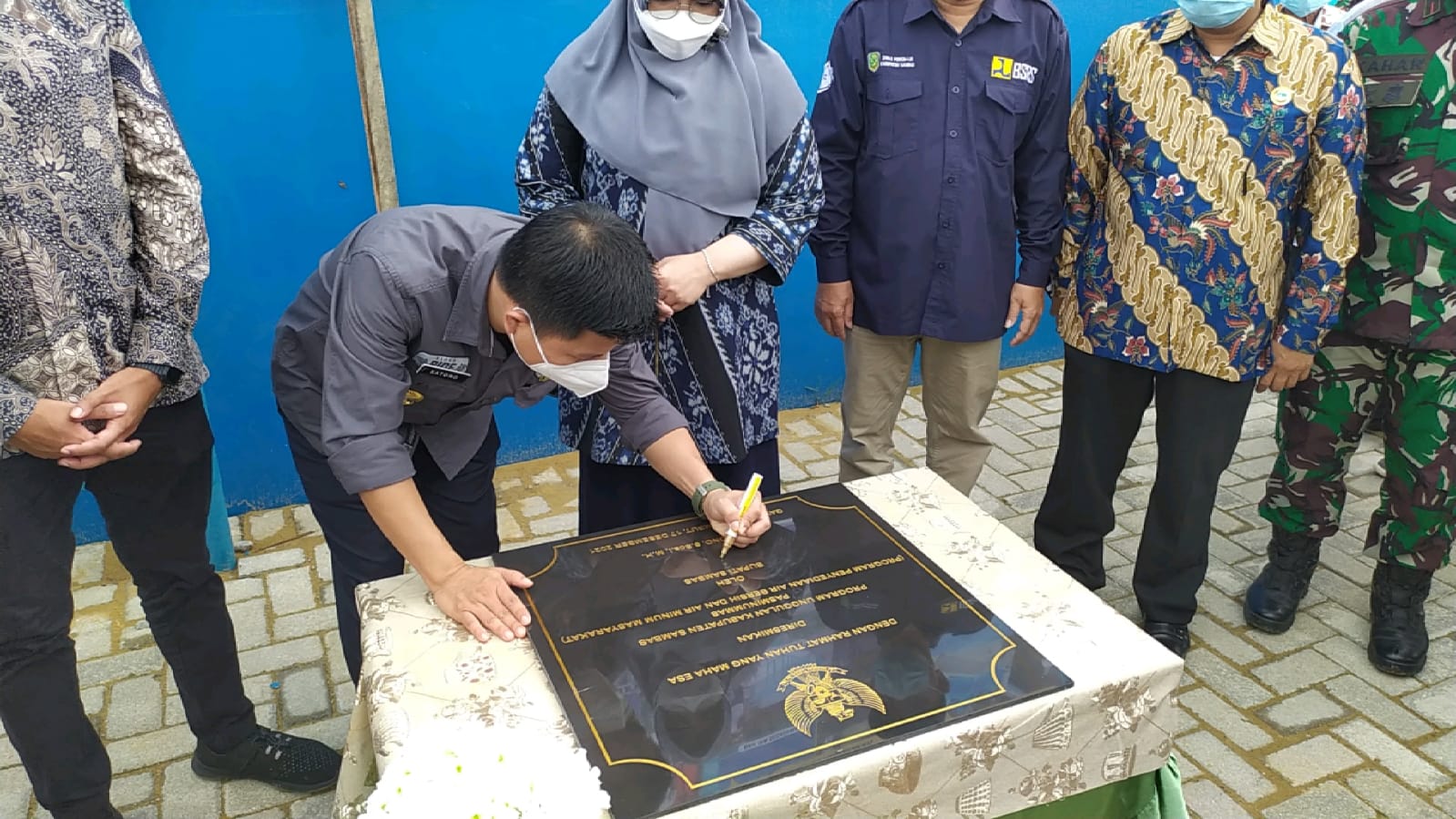 Bupati Satono secara resmi melaunching pelayanan IPA Gayung Bersambut dan Program Unggulan Pasminumas Kabupaten Sambas dengan melakukan pemotongan pita dan penandatanganan prasasti dan dilanjutkan dengan pembukaan keran air pertama oleh Bupati Sambas disaksikan oleh seluruh tamu undangan yang hadir. (PPID Kab. Sambas/PIKP)