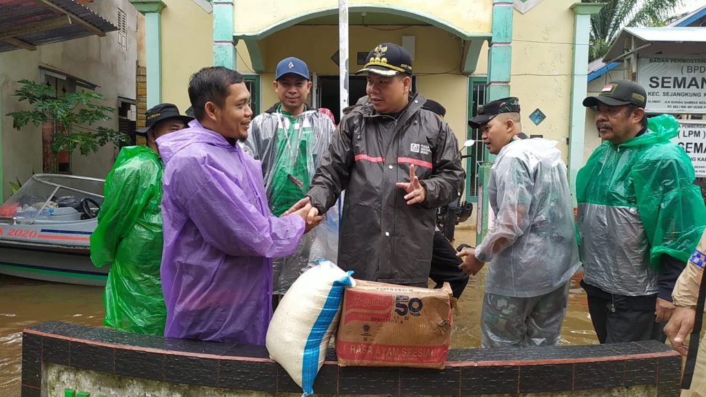 Sambas, PPID โ Bupati Sambas, H Satono meninjau kondisi warga yang terendam banjir sekaligus menyalurkan bantuan di tiga desa di Kecamatan Sejangkung. Ketiga desa itu adalah Desa Perigi Limus, Desa Sendoyan dan Desa Semanga, Minggu 5 Maret 2023.