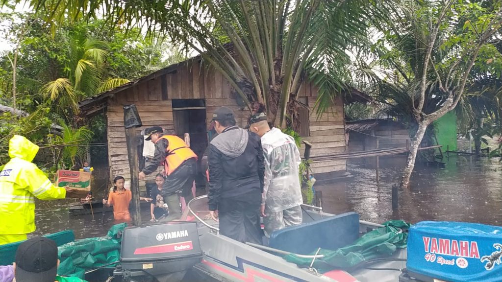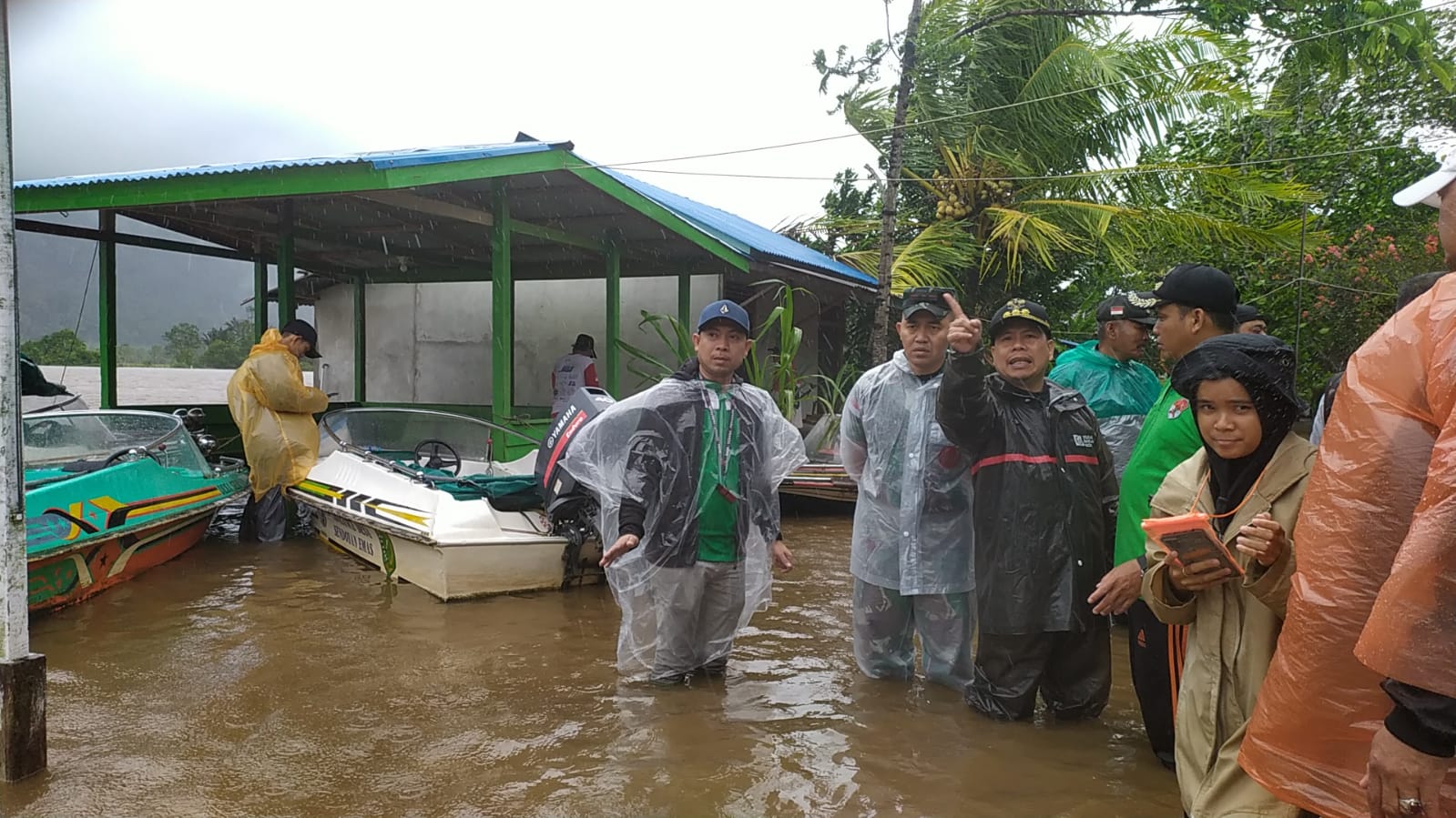 Dengan menggunakan SpeedBoat, Bupati Satono didampingi Sekretaris Daerah, Ferry Madagaskar, Dandim 1208 Sambas, Letkol Inf Dadang Armada Sari, Kapolres Sambas, AKBP Sugiyatmo, dan sejumlah Kepala OPD terkait saat meninjau warga yang terendam banjir.