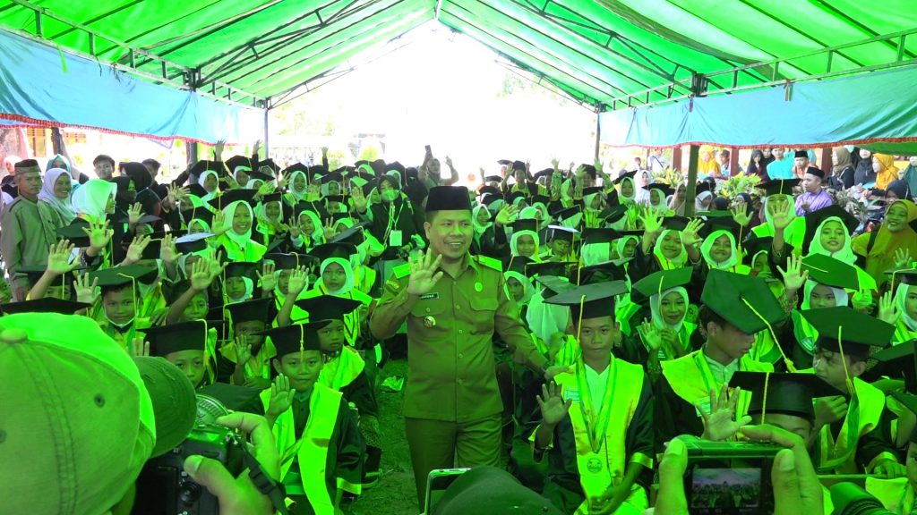 Menutup acara wisuda santri, Bupati Sambas satono mengajak kepada seluruh peserta wisuda untuk berpoto bersama sekaligus menyempatkan diri untuk berdialog dengan warga masyarakat teluk keramat. (PPID Kab. Sambas/PIKP)