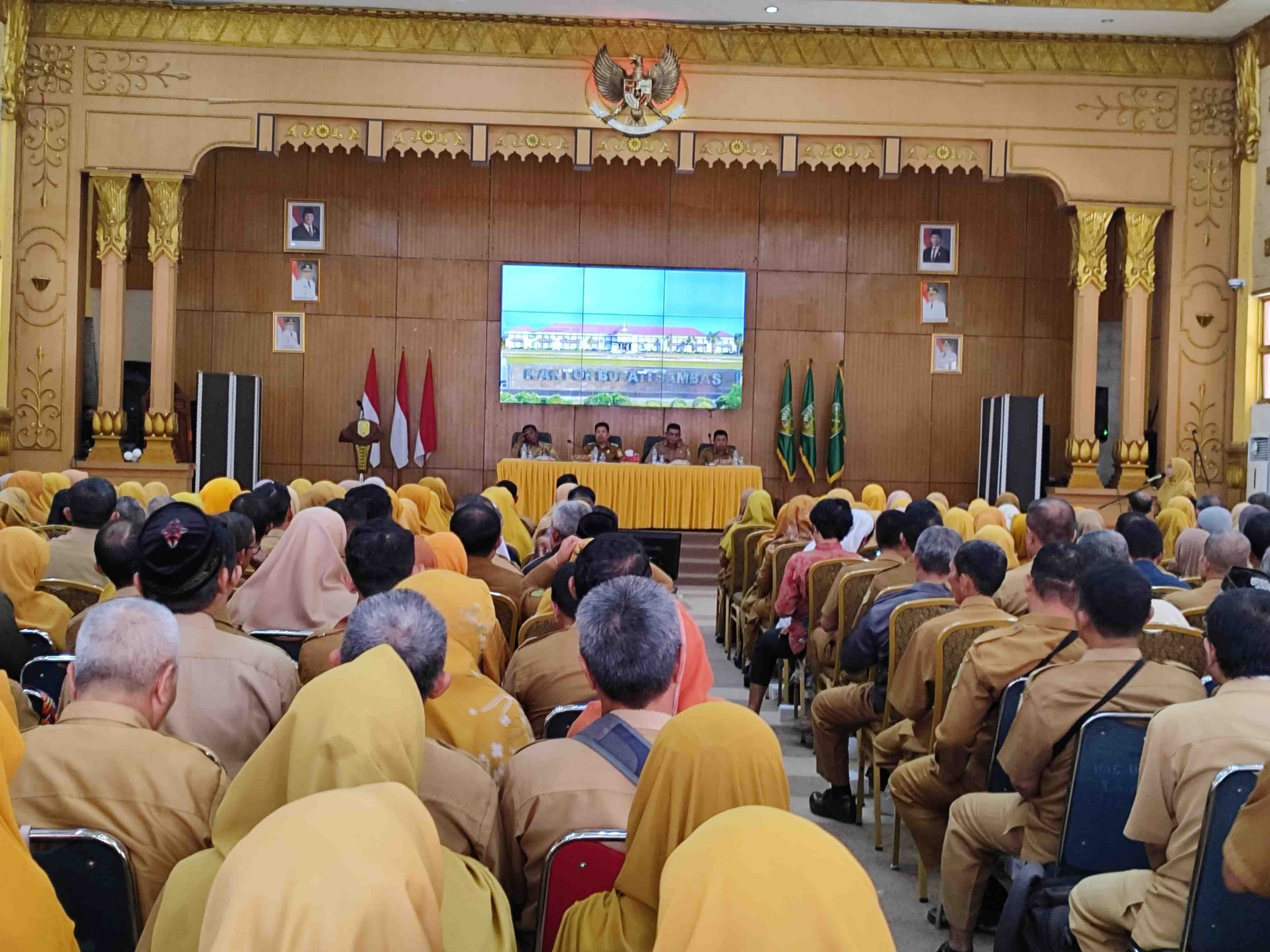 Sambas, PPID – Dinas Pendidikan dan Kebudayaan (Disdikbud) Kabupaten Sambas menggelar Rapat Peningkatan Kapasitas Kepala Sekolah Se-Kabupaten Sambas di Aula Utama Kantor Bupati Sambas, Senin (16/6/2025).