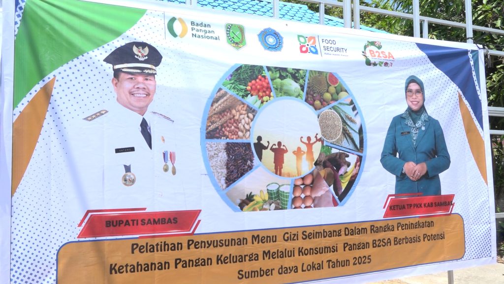 Sambas, PPID – Guna memenuhi kebutuhan gizi seimbang serta memberikan edukasi kepada keluarga agar membentuk kebiasaan makan sehat secara berkelanjutan, Dinas Pertanian dan Ketahanan Pangan Kabupaten Sambas bekerja sama dengan TP PKK Kabupaten Sambas mengadakan Pelatihan Penyusunan Menu Gizi Seimbang (Isi Piringku) bagi Kader PKK se-Kecamatan Jawai Selatan.