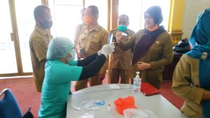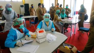 Sambas, PPID – Gugus Tugas Percepatan penanganan Covid 19 di Kabupaten Sambas melaksanakan Rapid Test kepada ASN Kabupaten Sambas yang berdomisili di luar Kabupaten Sambas. Tujuan dilaksanakan Rapid test kepada ASN yang berdomisili diluar kabupaten sambas adalah untuk memutus mata rantai penyebaran covid 19 di Kabupaten Sambas.