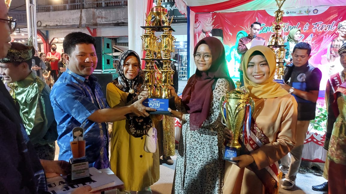 Terlihat diakhir acara Bupati Sambas memberikan hadiah berupa piala dan uang tunai kepada para pemenang serta juara favorit pilihan Bupati Sambas. (PPID Kab. Sambas/PIKP)
