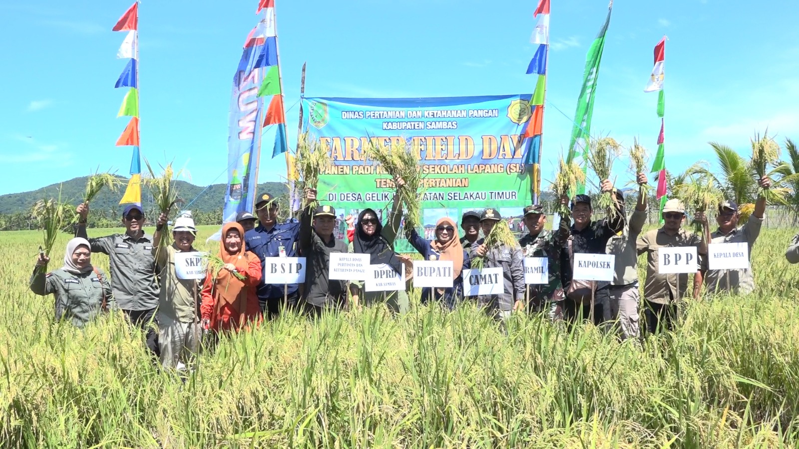 Sambas, PPID – Bertempat di Desa Gelik Kecamatan Selakau Timur Kamis 3 Oktober 2024 melalui Dinas pertanian dan ketahanan Pangan Kab. Sambas yang bekerjasama dengan UPT Kementerian Pertanian Kalbar menjadi Lokasi Panen Padi Program Farmer Field Day Kegiatan Sekolah Lapang Tematik pertanian. Pjs Bupati Sambas ikut hadir dalam panen padi ini yang ditemani oleh Asisten II dan III Setda Sambas Camat Selakau dan Selakau Timur, Kepala OPD dan Forkopimcam. Dalam kesempatan itu juga hadir dari perwakilan Kementerian Pertanian Anjas Suprapto dari UPT BSIP Kalbar.