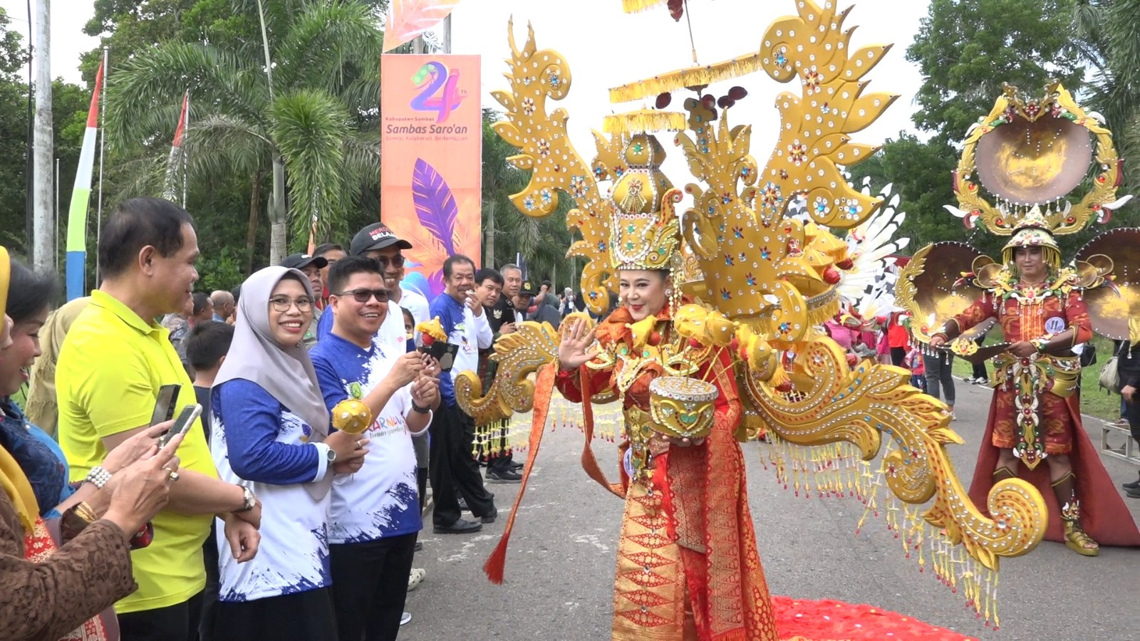 Selain Bupati Sambas Satono, hadir pula Wakil Ketua DPRD Kalbar Prabasa Anantatur, Anggota DPRD Kalbar Juliarti Djuhardi Alwi, Forkopimda, Sekretaris Daerah Kabupaten Sambas Ferry Madagaskar, jajaran Kepala OPD Pemkab Sambas serta ratusan masyarakat turut hadir antusias melihat karnaval.