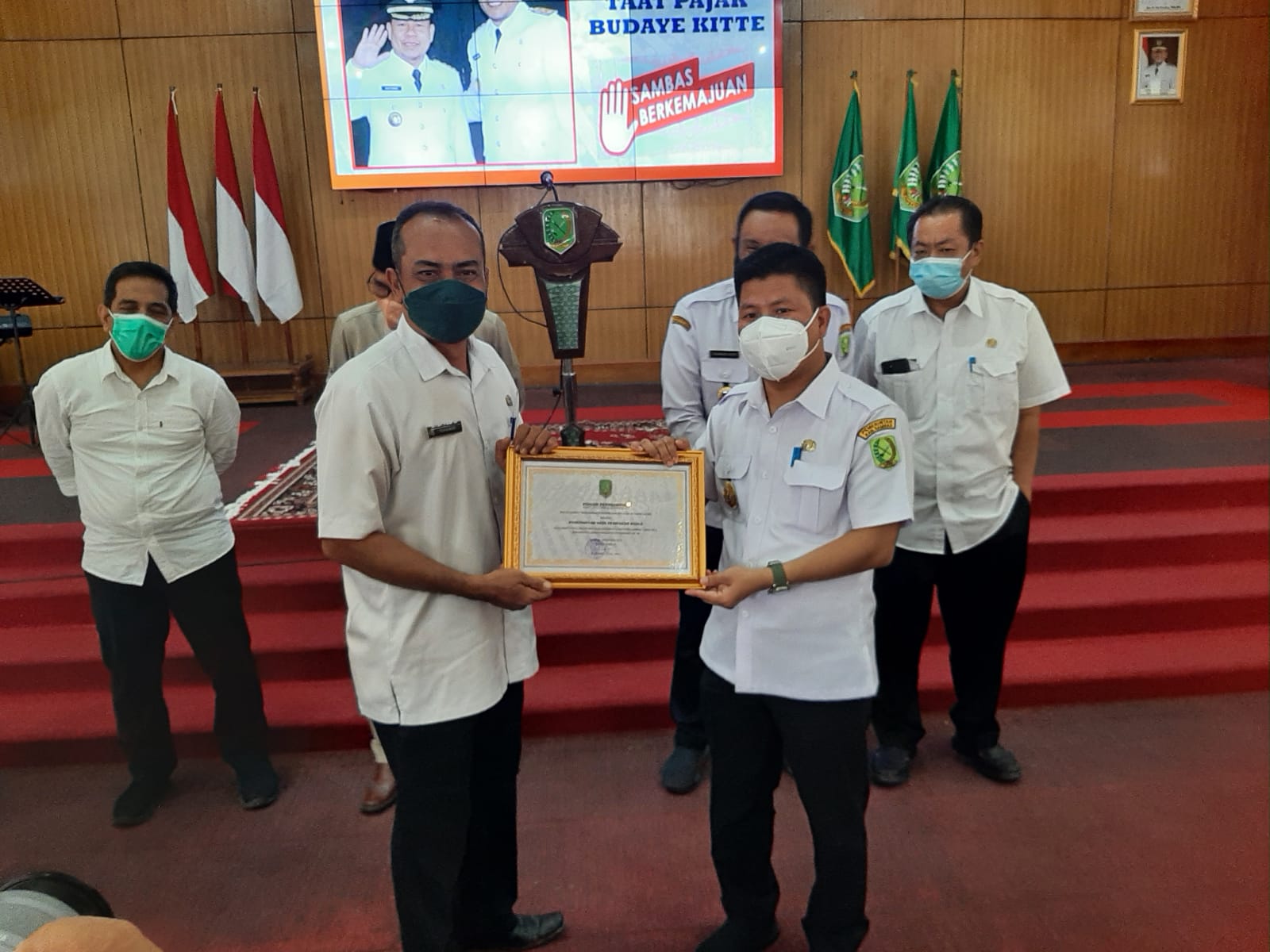 Sambas, PPID – Badan Keuangan Daerah Kabupaten Sambas menyelenggarakan Pemberian Penghargaan kepada Desa dan Kecamatan atas keberhasilan dalam intensifikasi Pajak Bumi dan Bangunan Perdesaan dan Perkotaan Kabupaten sambas tahun 2021. Kegiatan yang berlangsung di aula kantor bupati sambas Rabu 2 Februari 2022 dihadiri oleh Bupati Sambas Satono, Wakil Bupati Sambas Fahrur Rofi, Sekda Sambas Fery madagaskar, Kepala OPD, Camat serta seluruh Kepala Desa se kabupaten Sambas.