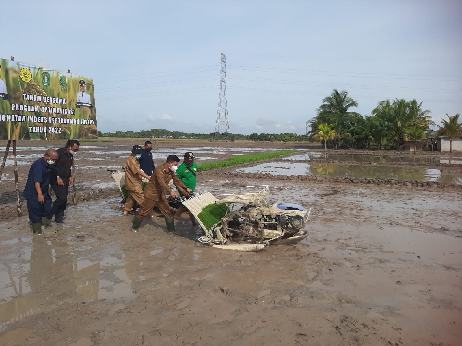 Sambas, PPID – Bupati Sambas H. Satono, S.Sos.M.H di dampingi oleh Kepala Dinas Pertanian dan Ketahanan Pangan Ir. Musanif, M.T melakukan Penanaman Padi sekaligus pencanangan perdana Indeks Pertanaman (IP) 400 di Desa Mensere Kecamatan Tebas, Senin 21 Februari 2022.