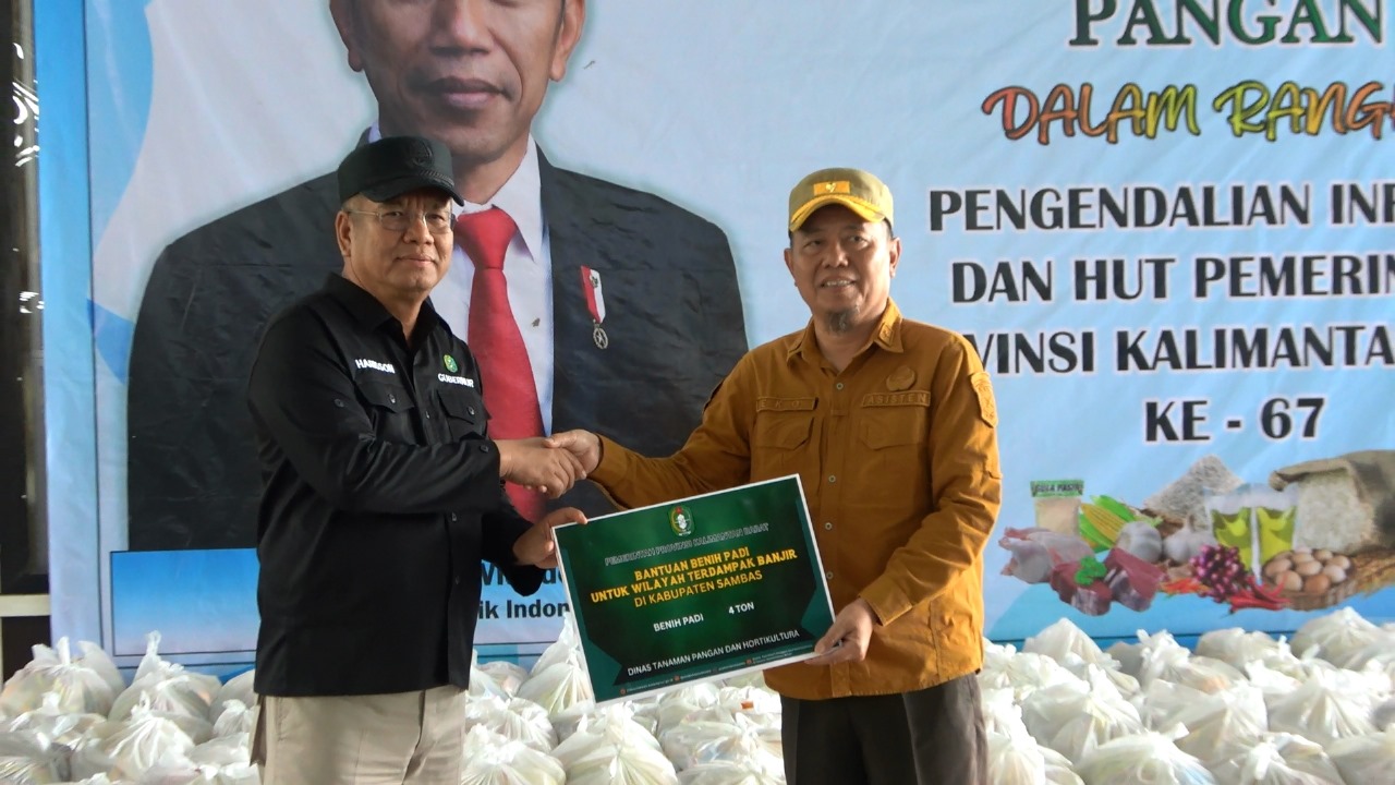 Selain bantuan pangan, Pemprov Kalbar juga menyerahkan secara simbolis benih padi sebanyak 4 ton oleh Pj Gubernur Kalbar.