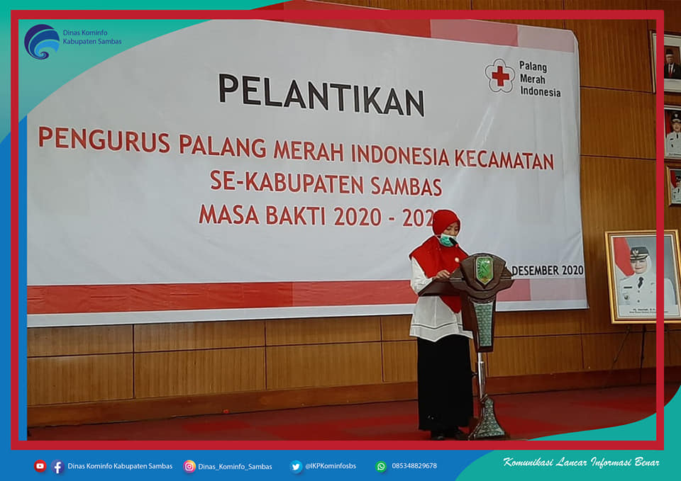 Sambas, PPID – Bupati Sambas H. Atbah Romin Suhaili, Lc, MH menyaksikan Pelantikan Pengurus Palang merah Indonesia Kecamatan Se-Kabupaten Sambas masa bakti 2020-2025, di Aula kantor Bupati Sambas Jumat 11 Desember 2020 . Melantik secara langsung seluruh pengurus Kecamatan PMI di kabupaten Sambas ketua PMI Kabupaten Sambas Hj. Lusyanah Kosasih. Pelantikan seluruh pengurus ditandai dengan pembacaan surat keputusan yang dilanjutkan dengan penyerahan pataka beserta symbol PMI kepada perwakilan dari pengurus yang dilantik. Hadir dalam pelantikan pengurus PMI Kecamatan kepala OPD pemda kabupten Sambas, pengurus PMI Kabupaten Sambas, para camat serta seluruh anggota yang akan dilantik disetiap kecamatan.