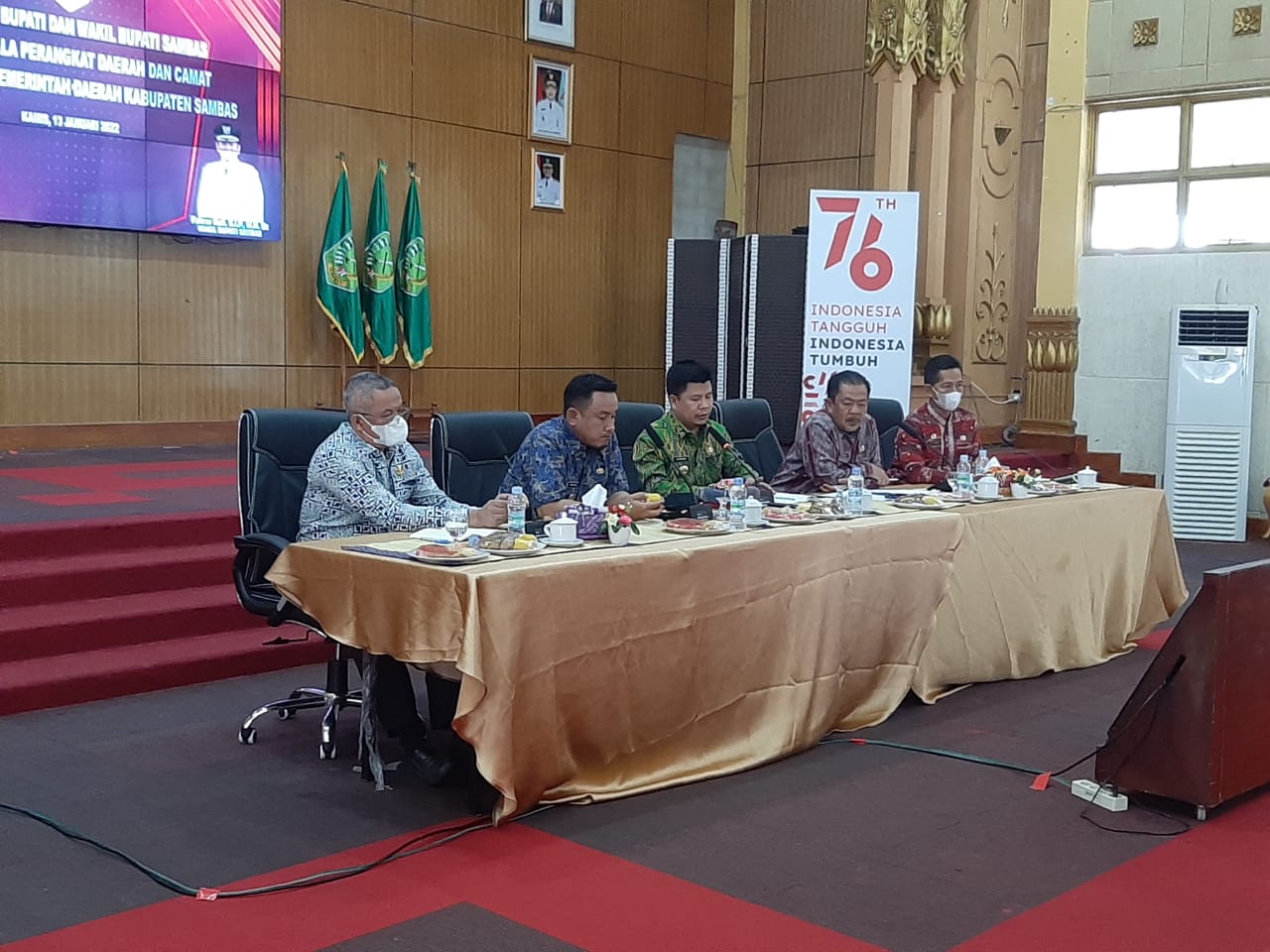 Sambas, PPID – Pemerintah Kabupaten Sambas menggelar Rapat Kerja Bupati dan Wakil Bupati Sambas bersama Kepala Organisasi Perangkat Daerah di Lingkungan Pemerintah Kabupaten Sambas serta Camat Se-Kabupaten Sambas, Kamis 23 Januari 2022.