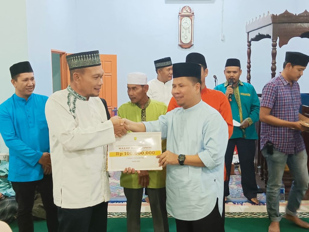 Pada kegiatan tersebut Bupati Satono menyerahkan bantuan secara simbolis kepada 7 Masjid dan 1 musholla di Kecamatan Semparuk. (PPID Kab. Sambas/PIKP)