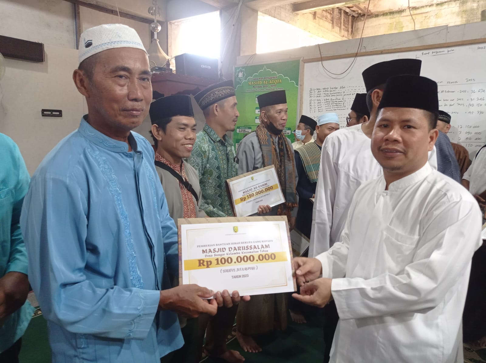 Di akhir acara diserahkan bantuan untuk 15 mesjid dan 1 buah musholla secara simbolis oleh Bupati Sambas antara lain Masjid Al Manar, Masjid Al-Atqiya, Masjid Ar- Rahim, Masjid Al – Hufazh serta masjid-masjid lainnya yang tersebar di Kecamatan Tebas.
