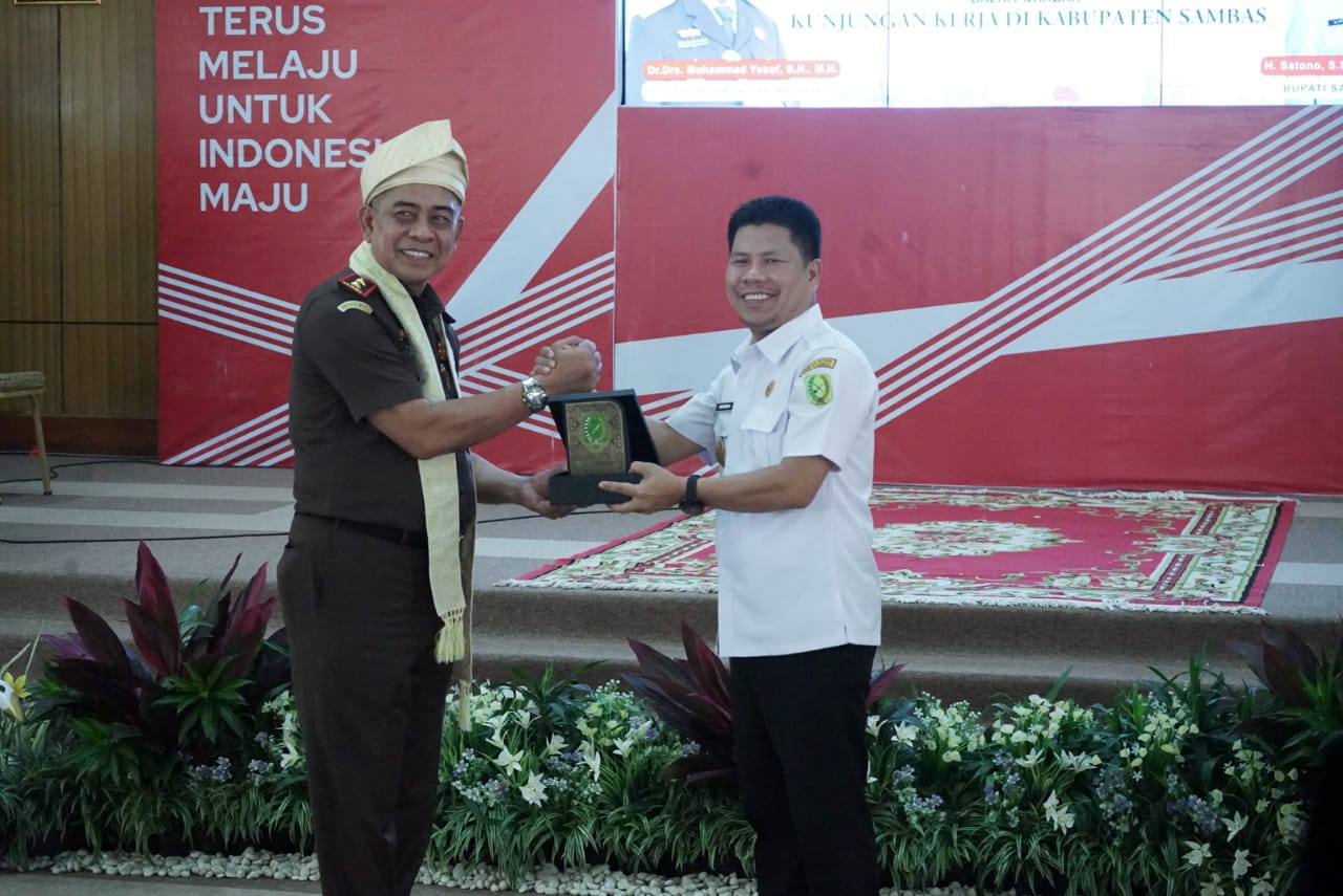 Kajati Kalbar Dr. Drs. Muhammad Yusuf, SH, MH mengucapkan terima kasih atas segala sambutan yang diberikan dalam rangka kunjungan kerjanya di Kabupaten Sambas serta memuji Pemerintah Daerah Kabupaten Sambas yang dipimpin Bupati Sambas H. Satono dengan Slogan Sambas Berkemajuan. Muhammad yusuf dalam kesempatan tersebut memberikan ceramah hukum berkaitan dengan peran kejaksaan dalam pencegahan tipikor pada pembangunan proyek strategis Nasional dan Daerah.