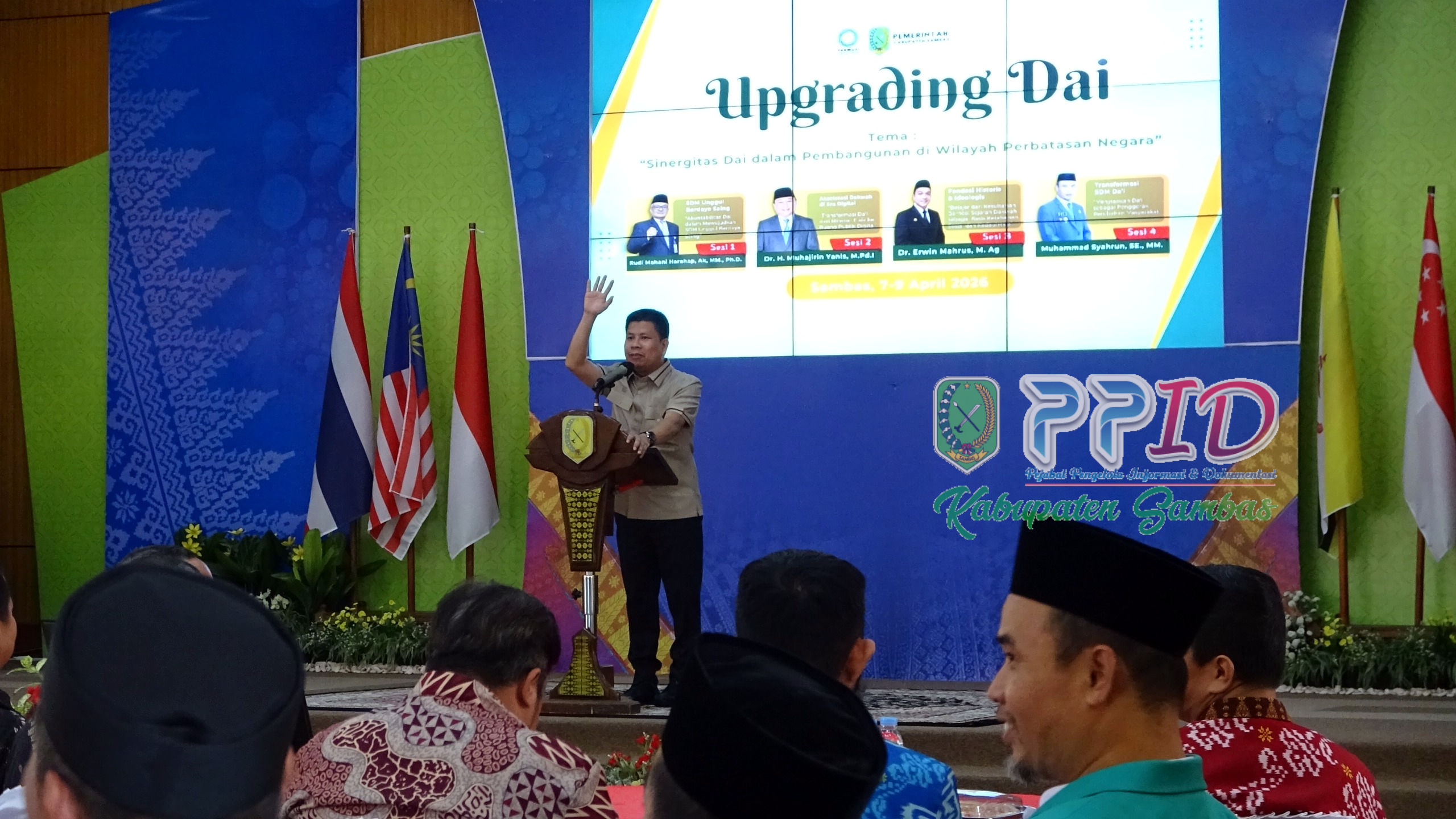 Sambas, PPID – Bupati Sambas H. Satono, S.Sos.I., M.H. menutup pelaksanaan Seminar Internasional dan Upgrading Dai yang berlangsung di Aula Utama Kantor Bupati Sambas, Kamis (9/4/2026).