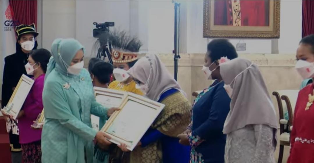 Sambas, PPID – Hebat dan luar biasa, Sri Nurwati, sosok Perempuan Berkemajuan asal Dusun Banggang, Desa Kubangga, Kecamatan Teluk Keramat, Kabupaten Sambas, Provinsi Kalimantan Barat, menerima penghargaan di Istana Negara, Kamis (21/4/2022).