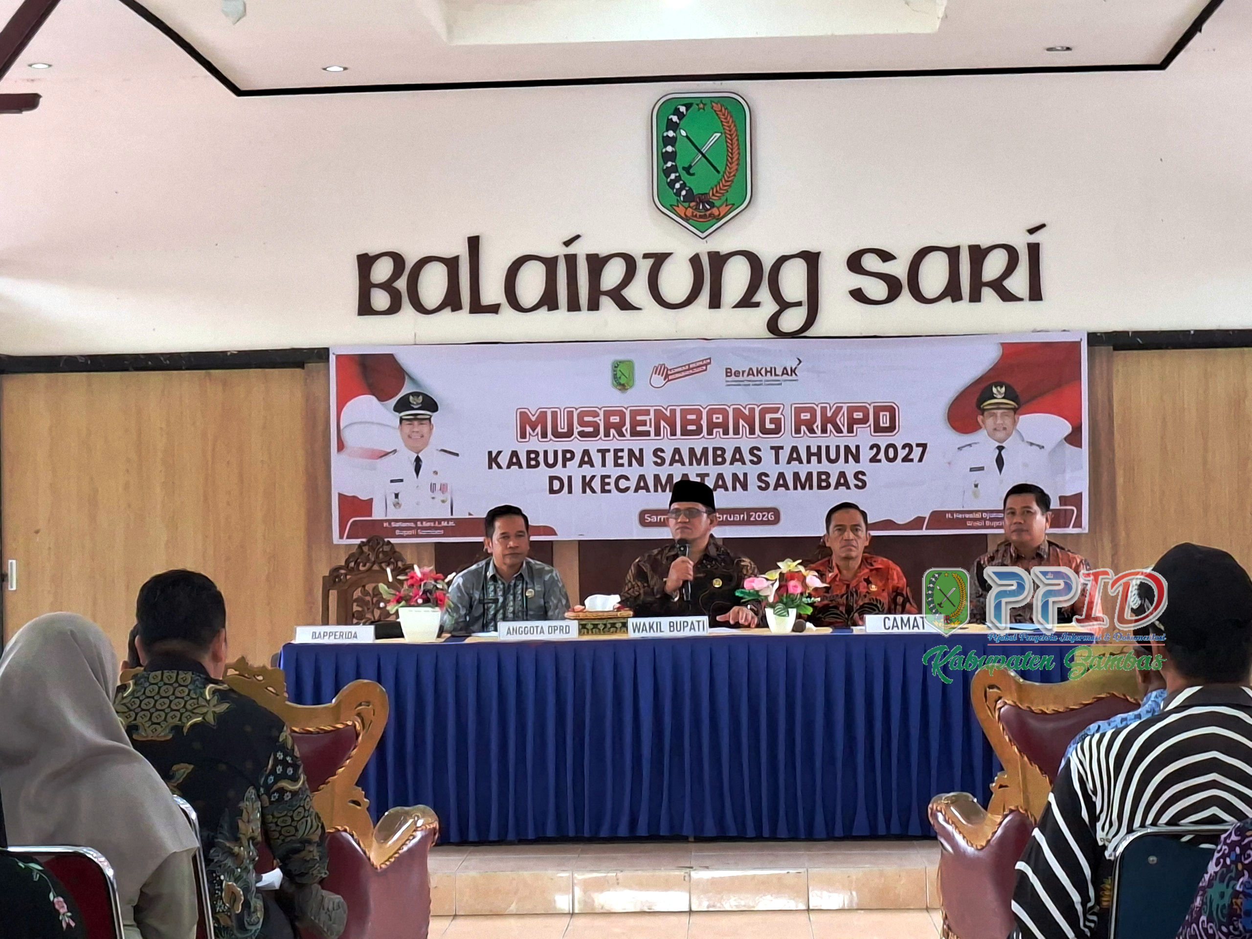 Sambas, PPID – Wakil Bupati Sambas, H. Heroaldi Djuhardi Alwi, ST, MT, mewakili Bupati Sambas membuka pelaksanaan Musyawarah Perencanaan Pembangunan (Musrenbang) tingkat Kecamatan Sambas yang digelar di Balairungsari Sambas pada Kamis (19/02/2026). Kehadiran Wabup Heroaldi dalam agenda ini menegaskan komitmen pemerintah daerah dalam menjemput aspirasi masyarakat, khususnya dari level desa.