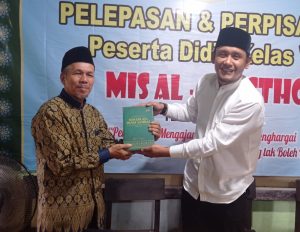 Sambas, PPID – Pesan Wakil Bupati Sambas Fahrur Rofi S.IP, MH.Sc saat menghadiri kegiatan pelepasan Siswa di yayasan Pendidikan Islam Madrasah Ibtidaiyah Al-Wustho Tebing Rubuh Desa Tebing Batu Kecamatan Sebawi Jumat, 17 Juni 2022. Pada lokasi yang ditempuh dengan menyeberangi sungai ini turut hadir pada acara ini Ketua Yayasan Al-Wustho, Kepala Sekolah, Kepala Dusun, Guru dan Siswa beserta orang tuanya.