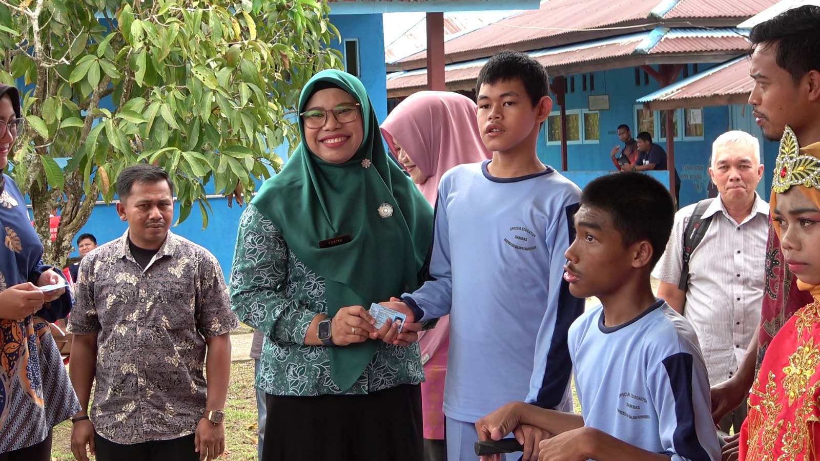 Pada kesempatan tersebut, Hj. Yunisa menyerahkan bantuan berupa alat bermain bagi siswa-siswi SLBN Sambas. Keceriaan dan antusiasme tampak jelas dari para pelajar dalam mengikuti rangkaian kegiatan puncak HAN yang mengusung tema “Anak Hebat, Indonesia Kuat Menuju Indonesia Emas 2025”.